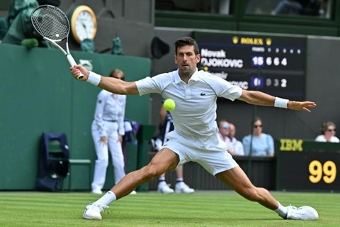 | Novak Djokovic contre son compatriote Miomir Kecmanovic à Wimbledon, le 1er juillet. |