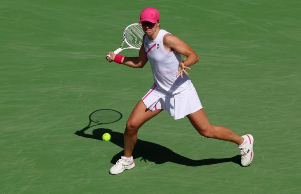 | La Polonaise Iga Zwitaek (No1 mondiale) contre la Tchèque Linda Noskova au 3e tour d'Indian Wells le 10 mars. |