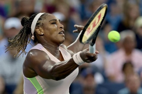 | L'Américaine Serena Williams lors de son match face à la Britannique Emma Raducanu, lors du 1er tour du tournoi de tennis de Cincinnati, le 16 août. |
