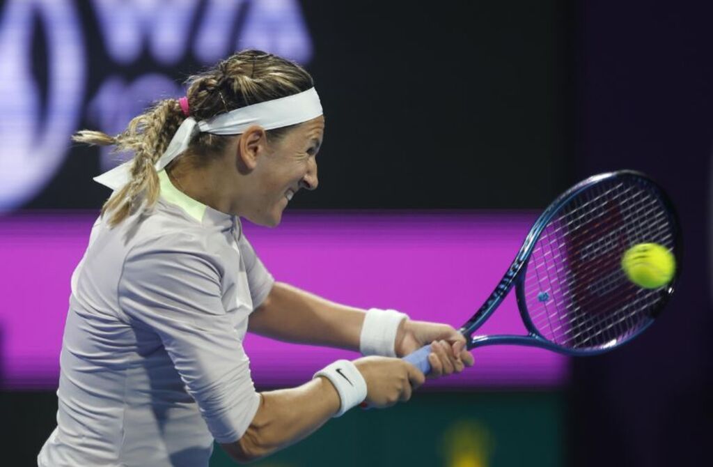 La Bélarusse Victoria Azarenka en huitième de finale du tournoi de Doha contre la Lettonne Jelena Ostapenko le 14 février 2024 à Doha