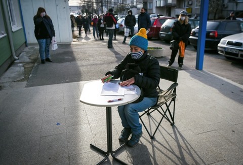 | Une femme s'enregistre comme demandeuse d'emploi devant le bureau pour les demandes de chômage, le 6 avril à Sofia, en Bulgarie. |