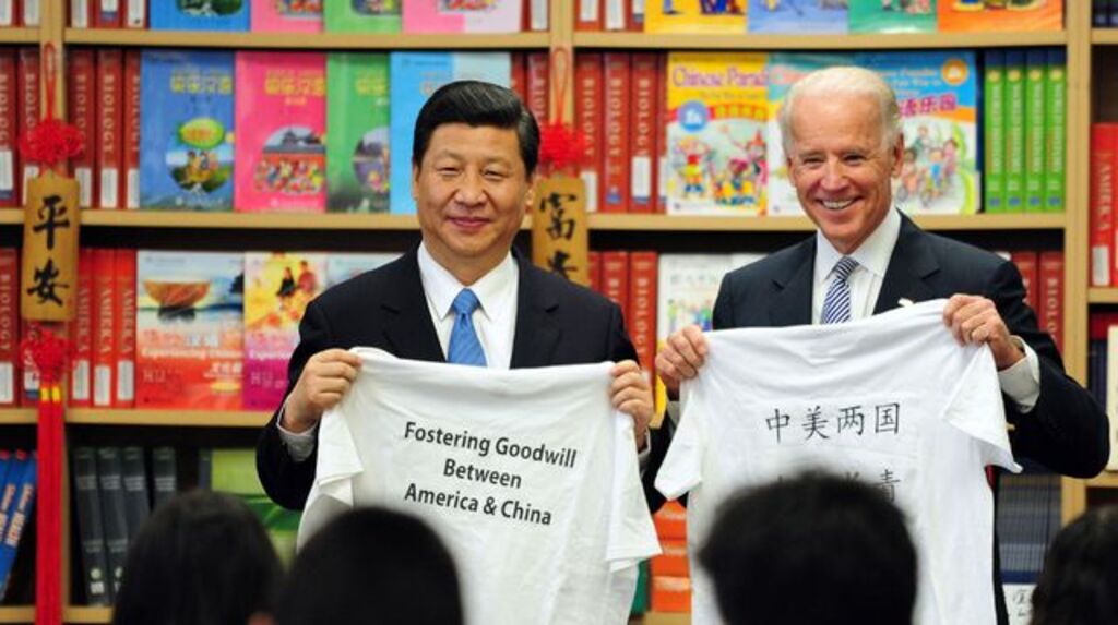 | Joe Biden (droite), alors vice-président des États-Unis, et Xi Jinping, en Californie le 17 février 2012. |