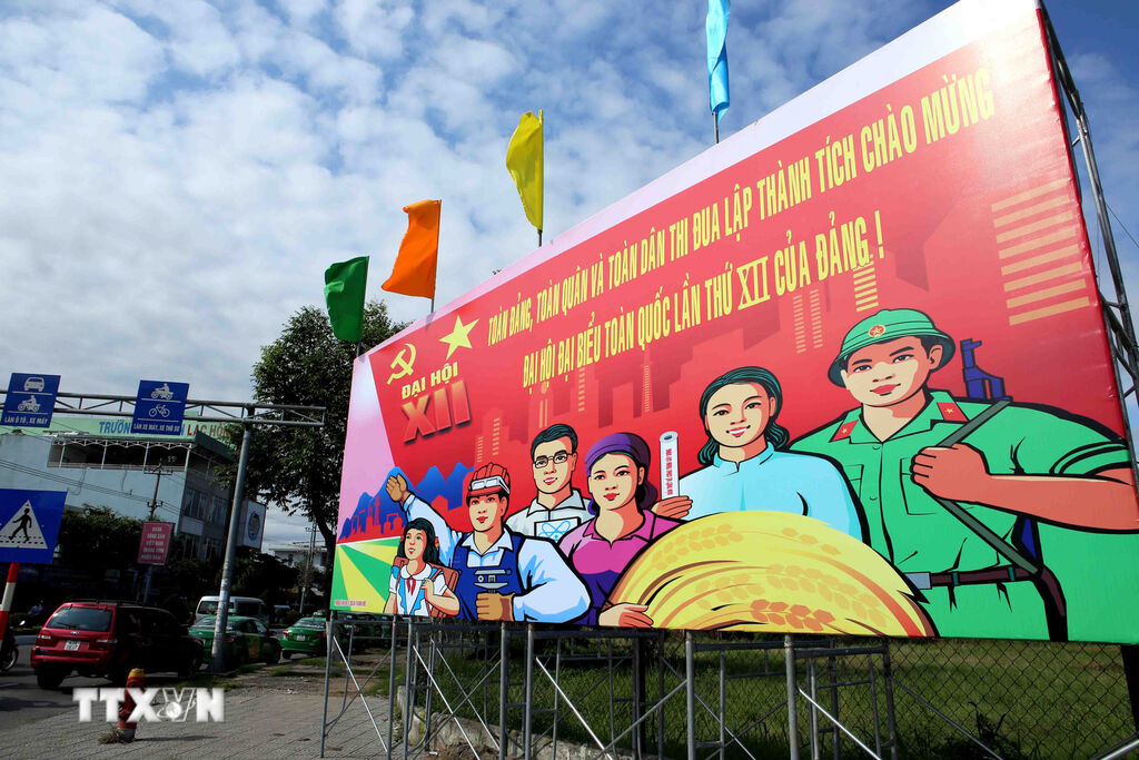 | Une banderole de bienvenue au XIIe Congrès du Parti dans la rue Nguyên Van Linh à Dà Nang. |