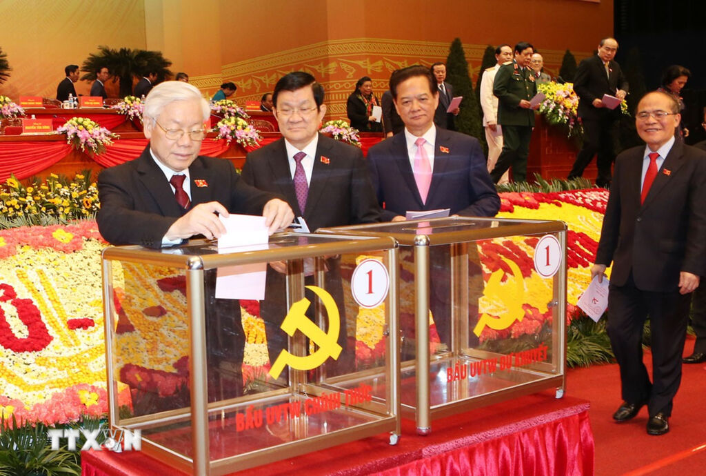 La première réunion du XIIe Comité central a eu lieu afin d'élire le Bureau politique, le Secrétariat central et le Comité central d'inspection. Nguyên Phu Trong a été réélu secrétaire général du XIIe Comité central. Trân Quôc Vuong a été réélu président du Comité central d'inspection.