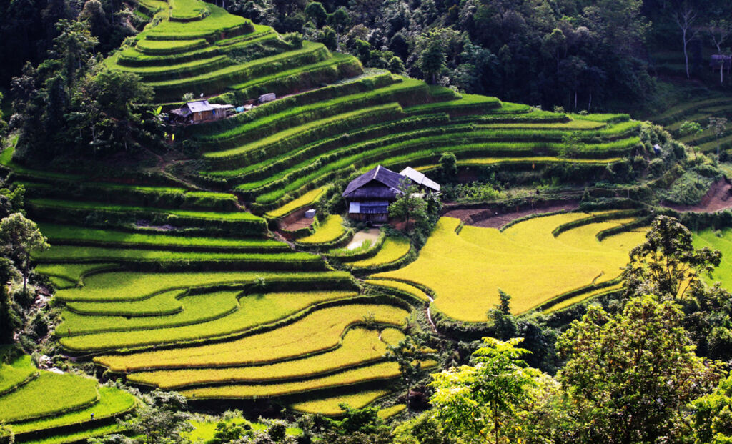 | Les rizières en terrasses dans le district de Xin Mân. |