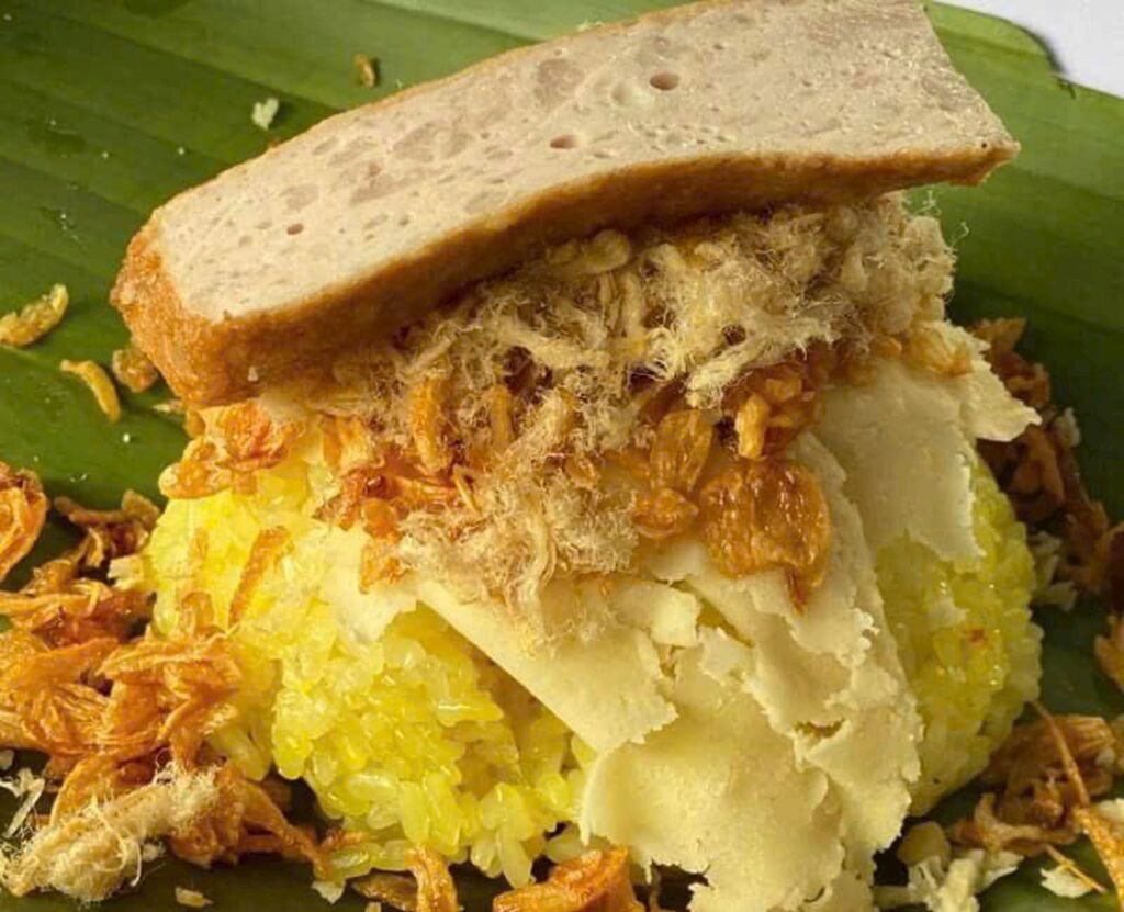 Le xôi xeo est célèbre pour sa teinte jaune vif. Il est généralement servi avec une garniture d'échalotes frites et de fil de viande, ajoutant un croquant savoureux qui complète les nuances sucrées du plat.