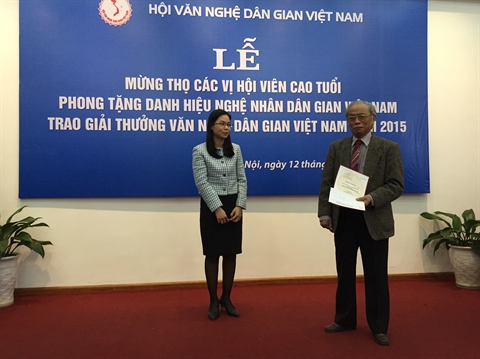 | Cérémonie de remise du Prix des Lettres et des Arts folkloriques 2015, le 12 décembre à Hanoi. |
