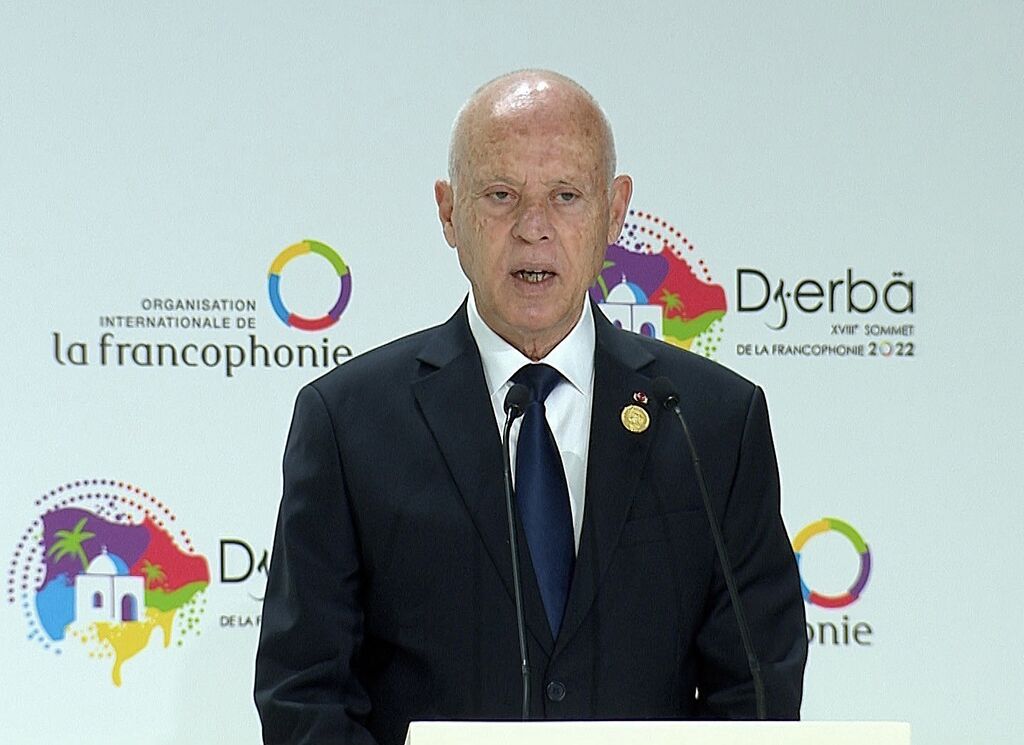 | Le président tunisien Kaïs Saïed prononce son discours d'ouverture du XVIIIe Sommet de la Francophonie, le 19 novembre à Djerba. |