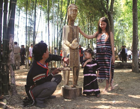 | L’artisan en train d’achever son œuvre "Le chaman", lors du Concours de sculpture sur bois des ethnies du Tây Nguyên en 2017. |