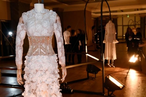 | Une robe d'Aouadi, exposée au Petit Palais à Paris, le 26 janvier. |