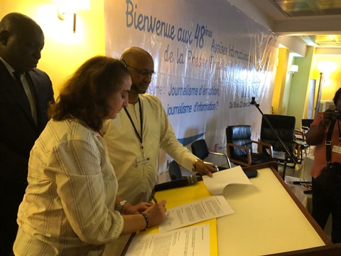 Dans le cadre de la cérémonie de clôture, les participants ont également témoigné la signature d’un accord-cadre entre l’UPF et le Forum des Éditeurs africains qui devront œuvrer ensemble pour promouvoir les médias, la liberté et l’indépendance des journalistes en Afrique et à travers le monde. Le secrétaire général de la Fédération internationale des Journalistes, Anthony Béranger, a aussi profité de cette occasion pour présenter la novelle Charte d’Éthique professionnelle des journalistes, fraichement adopté en juin 2019 lors du dernier congrès de cette organisation.