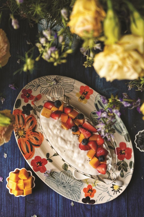 - Mettre la confiture au fond d’une coupelle, verser le yogourt puis le décorer avec des fruits comme myrtilles, mangue coupée en petits morceaux ou noix hachées.