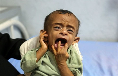 | Un enfant yéménite souffrant de malnutrition est pris en charge dans un hôpital de la ville portuaire de Hodeida, le 16 janvier au Yémen. |