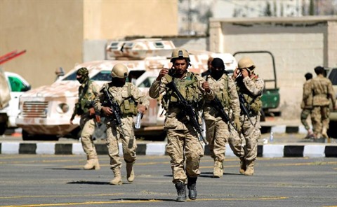 Combattants Houthis devant la mosquée al-Saleh à Sanaa le 30 novembre. Photo : AFP/VNA/CVN |