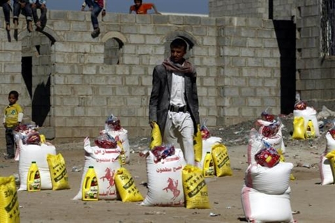 | Un homme reçoit de l'aide alimentaire à Sanaa (capitale du Yémen), le 17 décembre. |