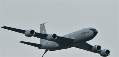 | Un Boeing KC-135 ravitailleur durant des manœuvres de l'OTAN à la base de Starokostyantyniv, Ukraine, le 12 octobre 2018. |