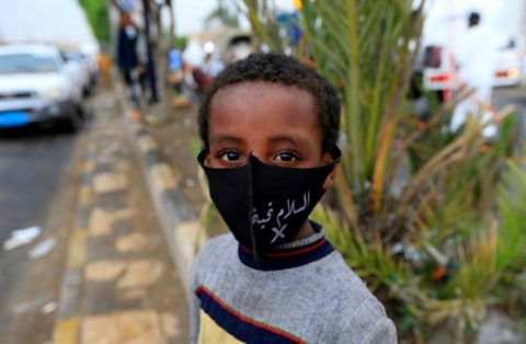 | Un jeune garçon yéménite porte un masque de protection contre le nouveau coronavirus, à Sanaa, le 21 mai. |