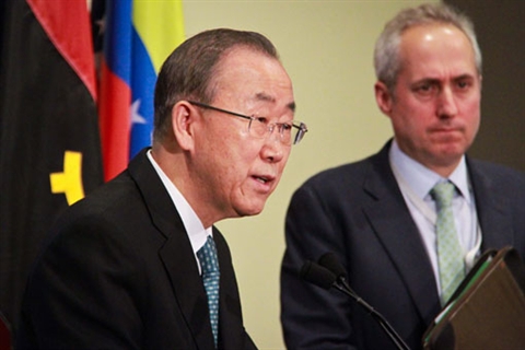 | Le secrétaire général de l'ONU, Ban Ki-moon (gauche). |