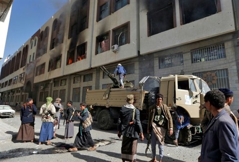 | Des combattants rebelles Houthis devant la résidence de l'ancien président yéménite Ali Abdallah Saleh, à Sanaa, le 4 décembre. |