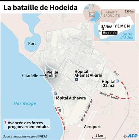 Trois sources militaires ont affirmé jeudi 8 novembre que des forces progouvernementales s'approchaient désormais du port, par le sud via une route côtière, et par l'est via une route principale reliant l'intérieur du pays au littoral. Ces forces ont avancé de deux kilomètres dans Hodeida en empruntant la route de Sanaa, qui relie l'est du Yémen au port, et de trois kilomètres en passant par l'avenue al-Duraihimi, le long du littoral, au sud du port, ont précisé ces sources.