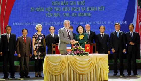 À cette cérémonie de célébration, les dirigeants de Yên Bai et du Val-de-Marne ont signé un mémorandum sur l’orientation de la coopération bilatérale dans les temps à venir. Selon ce texte, d’ici 2019, les deux parties continueront de coopérer étroitement notamment dans les projets suivants : «Action dans le domaine de l’eau au Vietnam, partage d’expériences et amélioration de la compétence», «Aménagement et gestion du système de traitement des eaux usées de la ville de Yên Bai, vision 2030», «Culture du théier Shan Tuyêt pour améliorer les revenus des planteurs et préserver le label du thé Shan Tuyêt Suôi Giàng dans la commune de Suôi Giàng, district de Van Chân", «Assistance dans l’aménagement des zones touristiques de Tân Huong, de Suôi Giàng, du tourisme de communautaire", rédaction de livres pour présenter les potentiels touristiques des deux localités…