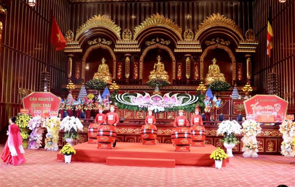 L'événement comprenait des performances de tambours et des rituels de sonnerie de cloches et des cérémonies de prière pour la prospérité nationale.