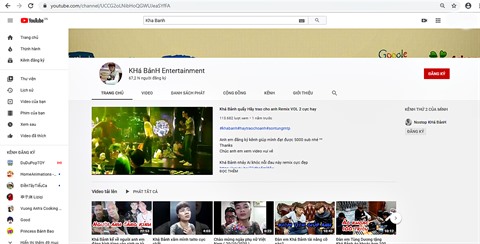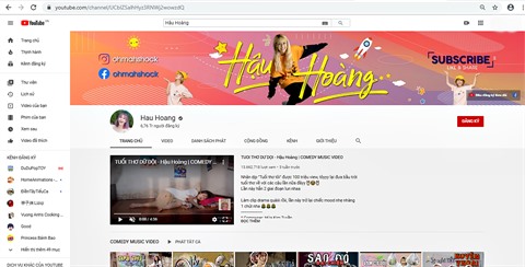 | La chaîne d'Youtube de Hâu Hoàng, une des pages les plus vues au Vietnam. |