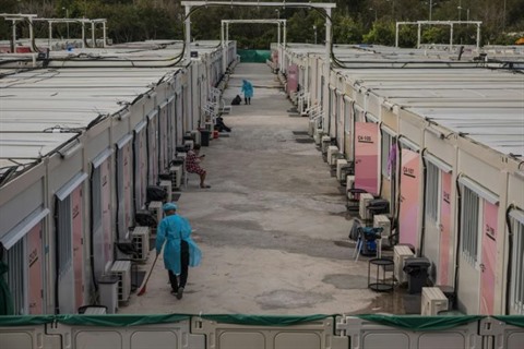 | Dans un camp d'isolement temporaire dédié aux personnes infectées par le virus, à Hong Kong le 16 mars. |