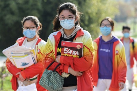 | Des élèves reprennent les cours, le 7 avril à Bozhou, dans l'Est de la Chine. |
