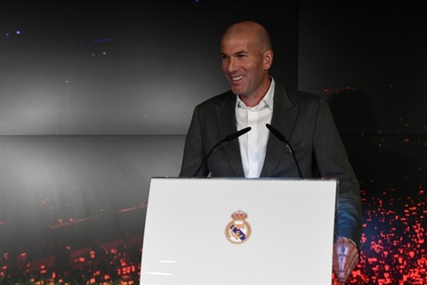 | Zinedine Zidane lors d'une conférence de presse pour son retour au Real le 11 mars à Madrid. |