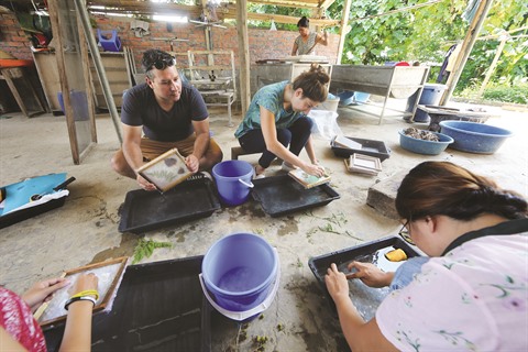 Pour que les visiteurs puissent voir de leurs propres yeux et toucher au papier, cette entreprise sociale organise deux fois par mois des visites dans le village de Suôi Co, commune de Hop Hoà, district de Luong Son, province de Hoà Binh (Nord).