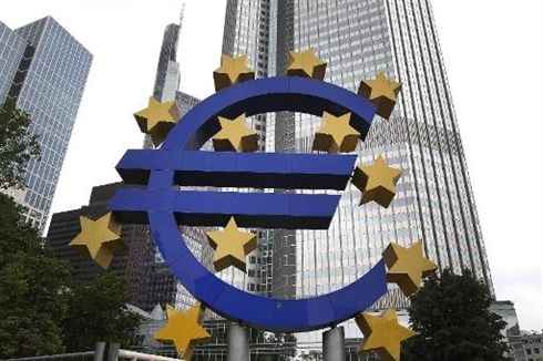| Le logo de l'euro devant le siège de la Banque centrale européenne à Francfort, en Allemagne. |