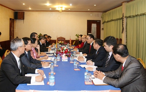 | Séance de travail entre le Comité national du développement rural et de la lutte contre la pauvreté du Laos et le Comité de pilotage de la région Nord-Ouest du Vietnam, le 3 novembre à Vientiane. |