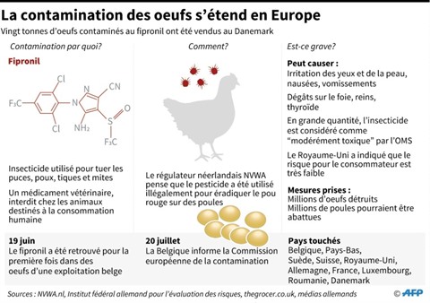 Le 20 juillet, les autorités belges avaient prévenu tous les États membres de l'UE, via le système d'alerte européen, du risque de distribution d'oeufs contaminés, conduisant à des rappels massifs de produits alimentaires.