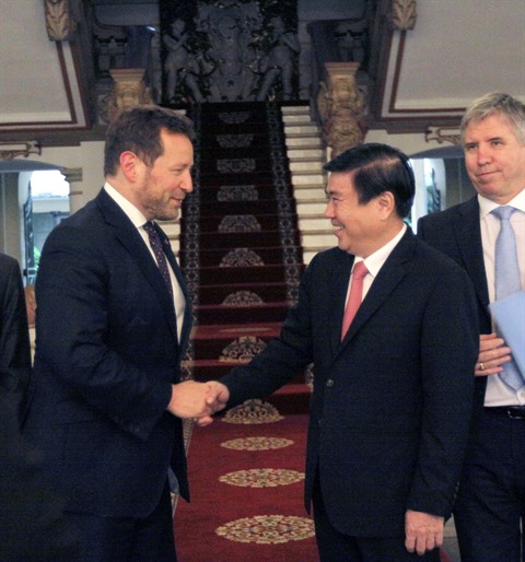 | Le président du Comité populaire de Hô Chi Minh-Ville Nguyên Thanh Phong (droite) et Ed Vaizey, envoyé commercial du Premier ministre britannique. |