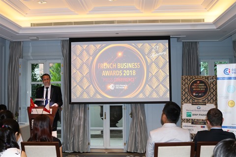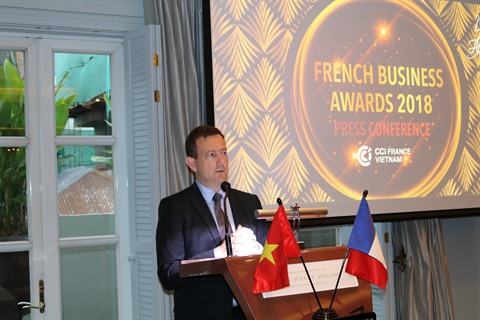 | L'ambassadeur de France au Vietnam, Bertrand Lortholary, lors du point presse sur "French Business Awards 2018". |