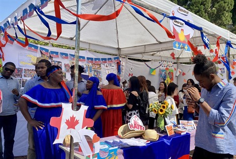 | Les stands vivement décorés présentent la diversité culturelle de la communauté francophone. |