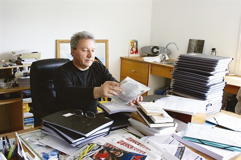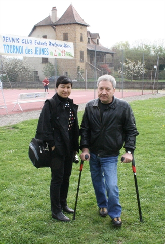| André Bouny et la rédactrice en chef du Courrier du Vietnam, Nguyên Thu Hà, lors d'une rencontre à Paris. |