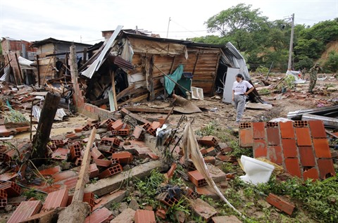 | Des maisons ravagées par un glissement de terrain à Cucuta, en Colombie. |
