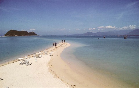 | La traversée de sable blanc, d’une longueur de 700 m, relie l’île de Diêp Son à la terre ferme. |