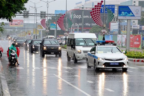 Sur un autre ton, il y a Sur un autre ton, il y a la tonalité impérative des convois officiels. C'est un bruit qui rend curieux. En effet, qui n'a pas envie de savoir quel personnage important passe sous ses fenêtres. Enfin…au début ! Parce que, le Vietnam reçoit souvent des personnages importants, j'en serai à passer sans cesse de mon bureau à mes croisées pour regarder défiler les toits noirs de voitures officielles, et à tenter de déchiffrer les couleurs des drapeaux qui flottent de part et d'autre du capot. Ceci étant, je peux mesurer à l'oreille l'importance du visiteur, au nombre de sirènes qui accompagnent le convoi. Plus il y en a, plus le rang est important dans la hiérarchie diplomatique.