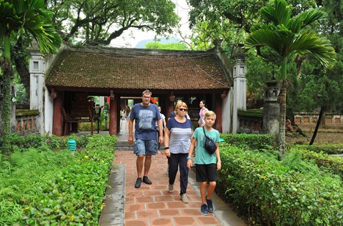 | Visiteurs étrangers à l'ancienne citadelle de Hoa Lu, dans la province de Ninh Binh (Nord). |