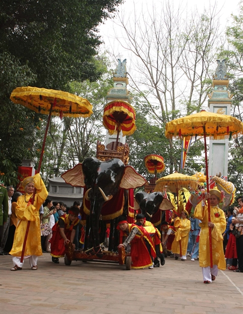 | Chaque année, la Fête du temple de Dông Nhân (Hanoi) en hommage des deux soeurs Trung se tient du 4e au 6e jour du 2e mois lunaire. |